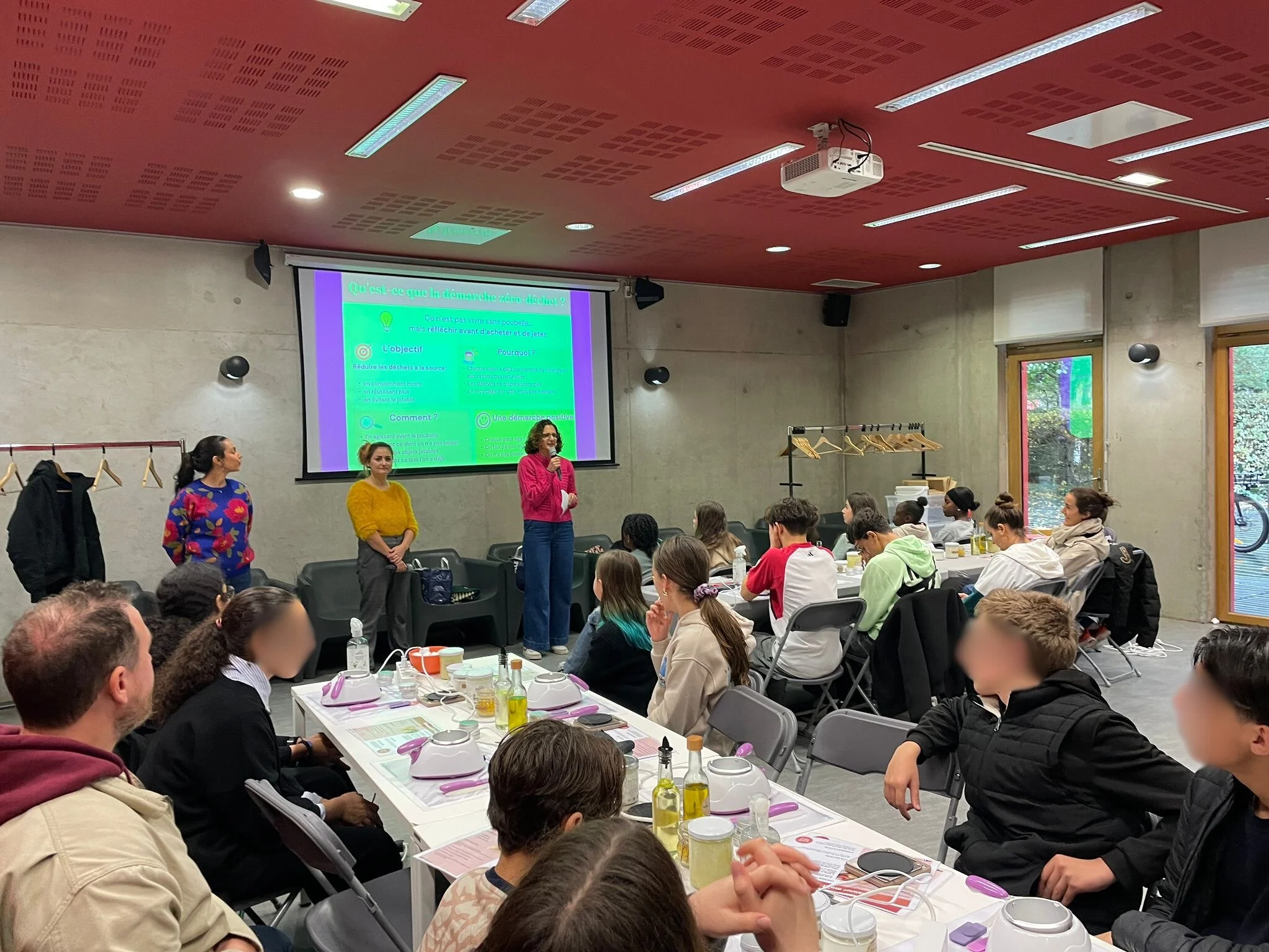 Les collégiens ont participé à un quiz autour de la démarche zéro déchet, avant de passer à la pratique à travers un atelier de fabrication de produits cosmétiques naturels et écoresponsables : baumes multi-usages, déodorants et savons.